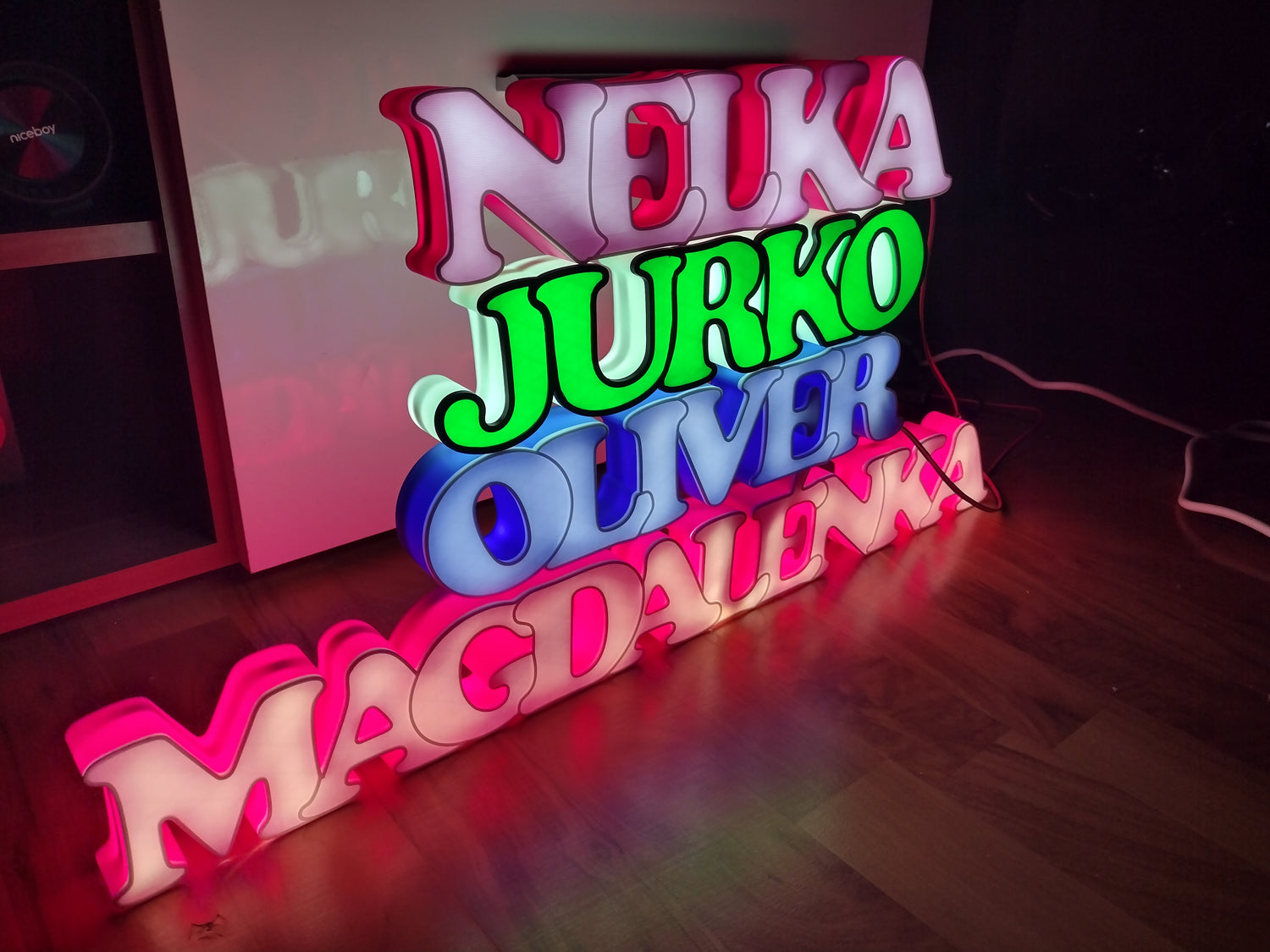 Vytvoríme vám originálnu svietiacu dekoráciu s menom, fotkou alebo vlastným motívom – ideálne ako darček pre deti, rodiny a oslavy.